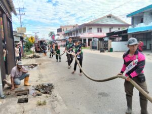 Dalam kegiatan itu, Sertu Darmaji dan Serda Kusairi tidak hanya memimpin, tetapi juga ikut berbaur bersama masyarakat membersihkan parit dan mengangkat sampah yang menyumbat aliran drainase.