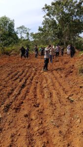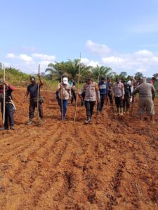 Sejak pagi hari, Kapolsek Simpang Dua IPTU Made Adnyana, S.H. bersama personel, karyawan PT. MKS, dan PPL telah berkumpul di lokasi penanaman di Desa Kampar Sebomban.