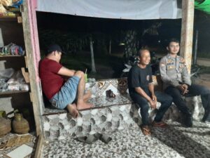 Polisi turun langsung, menyapa warga yang sedang berkumpul, lalu berdialog santai sambil menyampaikan pesan-pesan kamtibmas.