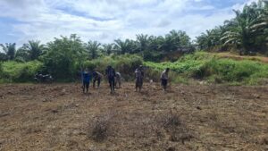Dengan semangat gotong royong, seluruh peserta bekerja sama menyiapkan lahan hingga proses penanaman selesai.