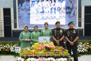 Salah satu momen utama dalam acara tersebut adalah prosesi pemotongan tumpeng sebagai bentuk rasa syukur atas perjalanan dan pengabdian Persit KCK yang kini telah memasuki usia ke-80 tahun.