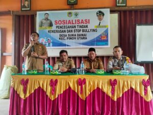 Salah satu langkah nyata dilakukan melalui kegiatan Sosialisasi Pencegahan Tindak Kekerasan dan Stop Bullying yang digelar di SDN 04 Dusun Nyatang I, Desa Suka Damai, Kecamatan Pinoh Utara, Senin, 20 April 2026.