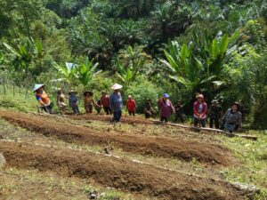Warga mengaku senang dapat terlibat langsung dalam pengelolaan lahan yang diharapkan mampu memberikan hasil ekonomi serta memenuhi kebutuhan pangan keluarga.